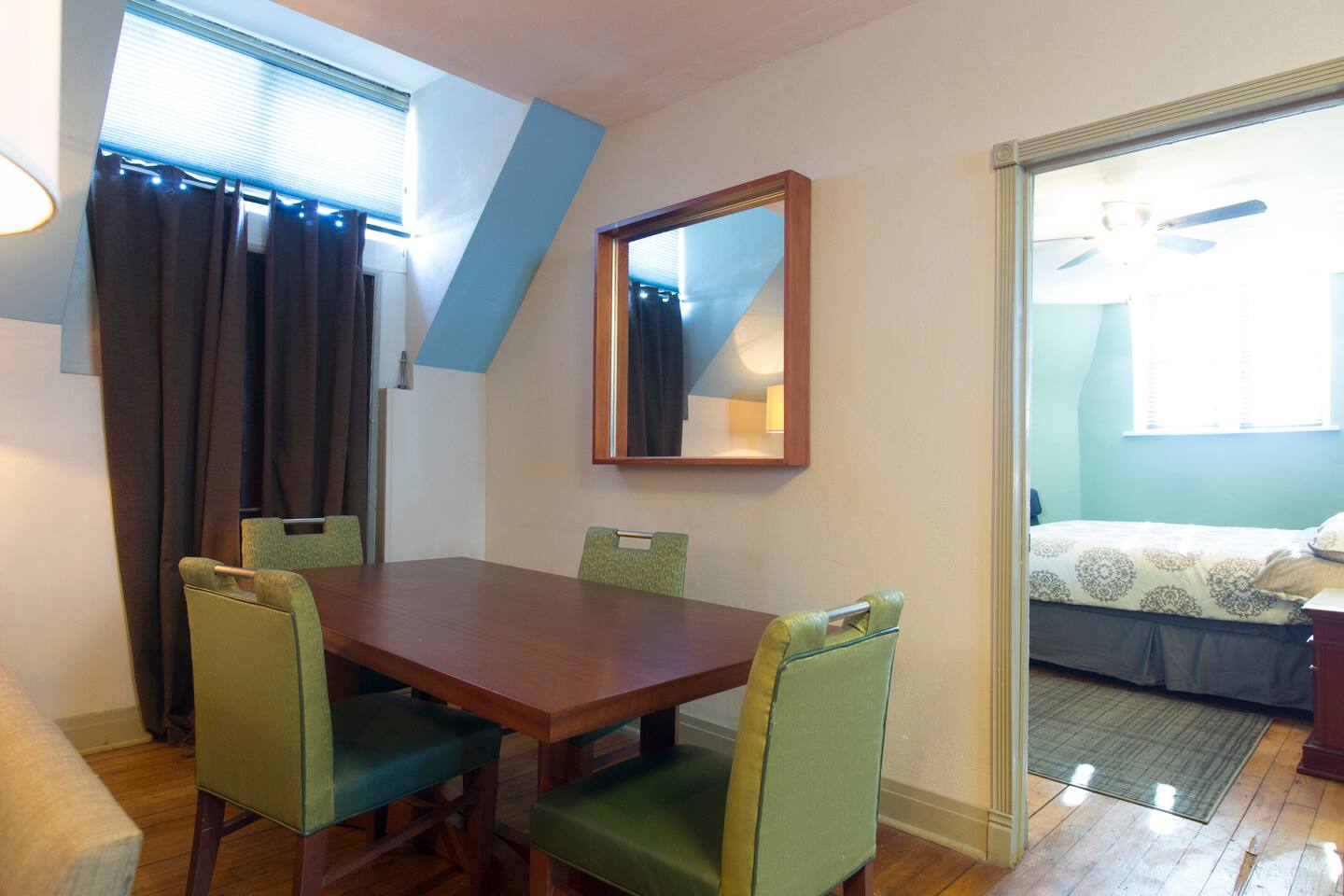 This room is on the third floor of a circa 1895 Richardsonian Romanesque Mansion. The home sits directly off the Kedzie stop, putting you about 20 minutes from downtown Chicago! You will have full access to the kitchen cooking and free Keurig coffee. You have a private mini fridge in your room for food storage. There are multiple common areas on the 1st, 2nd, and 3rd floors including Dining, Living, TV, and Recreation rooms. The house is one block from the Kedzie Green line rail station.