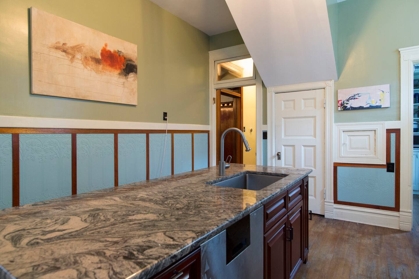 The space is in an old victorian era (c.1895) limestone/brick mansion located on Chicago's west side in the East Garfield Park neighborhood. It overlooks Washington Blvd. and is about a block from the Kedzie Green Line Train. Please note if you book, this is an old house, with over 125 years of living. This means lumps, bumps, scratches, and things in general that are less then perfect. Most people enjoy this character of a house, and it's why they book. I allow LUGGAGE DROP OFF! You can store your luggage in the closet before check-in and after check-out times, you can drop it off and pick it up as early and as late as you would like. Public transit options (train, bus, bike share) available about a block away.