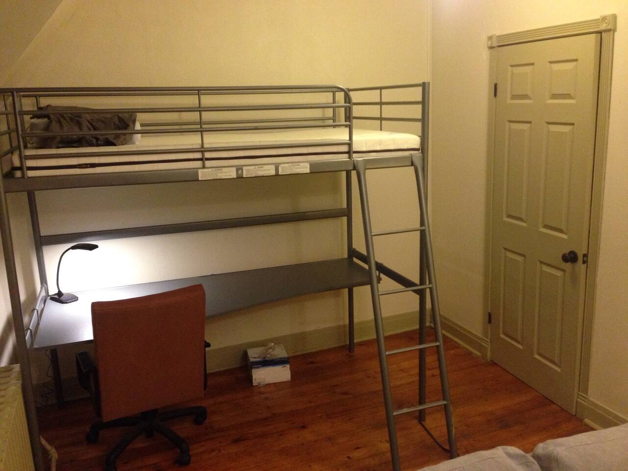 This 3rd floor north bedroom is the perfect space to call home for the lone traveler or couples who don't mind a smaller space. The room has a bed and desk, allowing for remote work. You will have full access to the kitchen cooking and free Keurig coffee. You have a private mini fridge in your room for food storage. There are multiple common areas on the 1st, 2nd, and 3rd floors including Dining, Living, TV, and Recreation rooms.