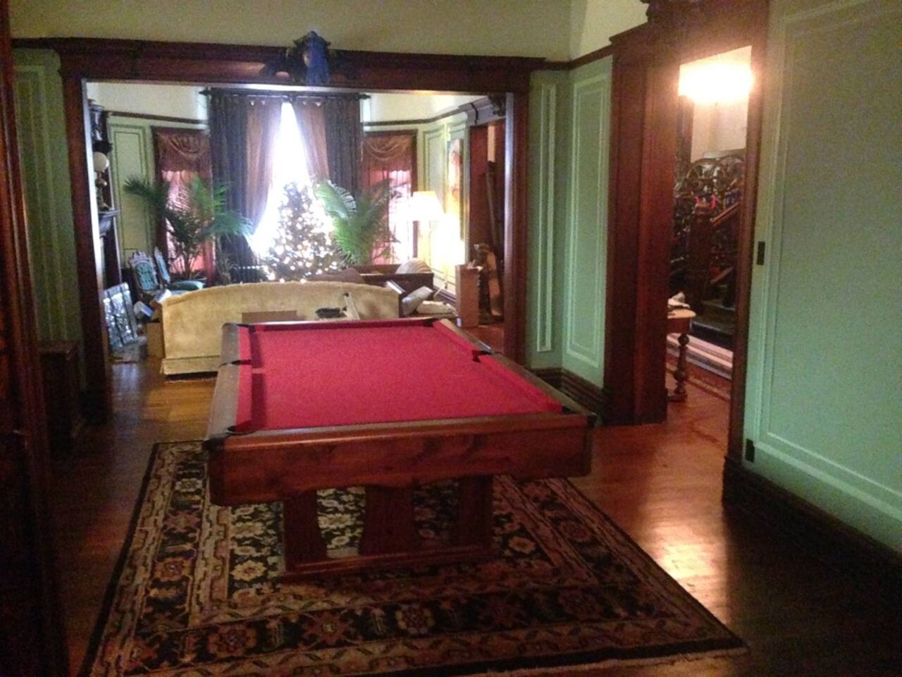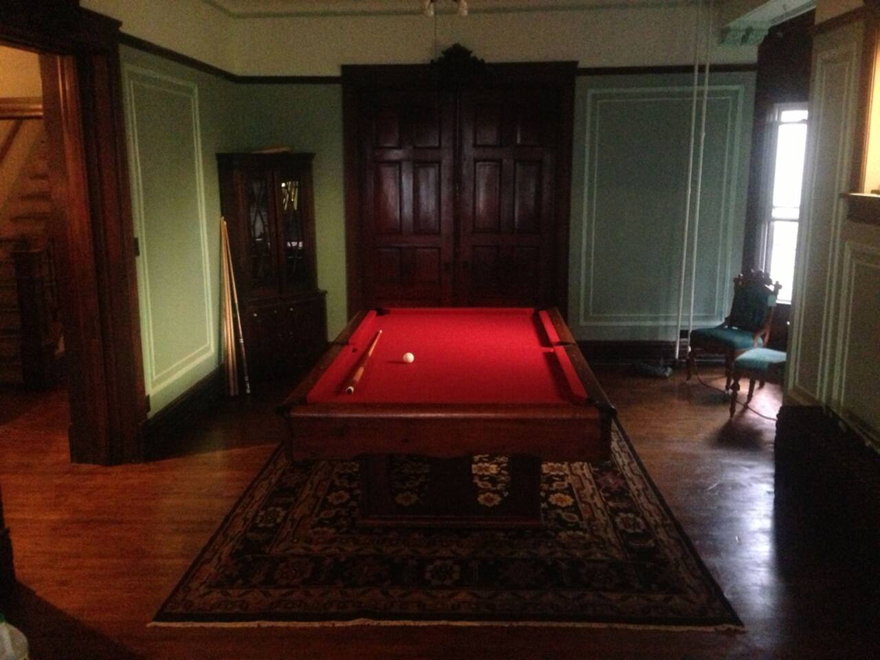 The entire home except remaining private rooms are available. This includes the kitchen, dining room, billiards room, parlor, laundry room, and of course common bathrooms.